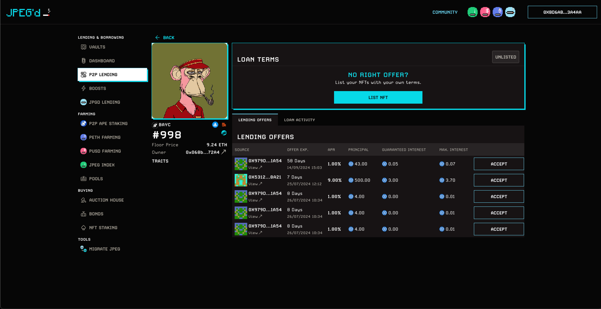 If you can't find a suitable collection offer, you can list your NFT with a loan request: